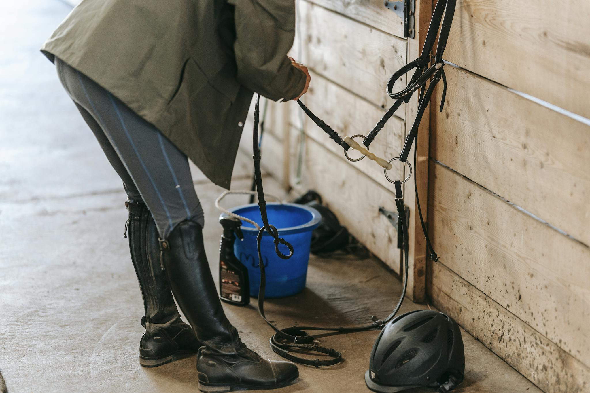 A woman riding a horse in an indoor equestrian arena, wearing a helmet.Andes Collection